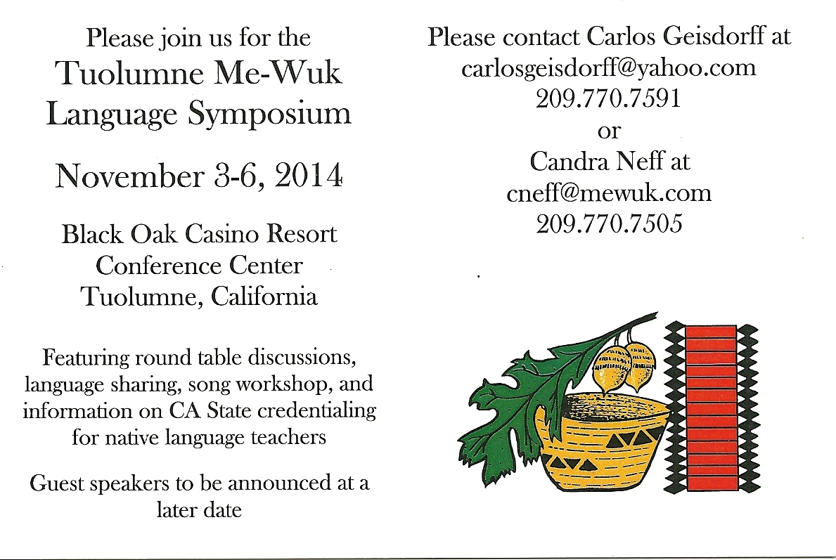 Language Symposium - November 7 to 9, 2018 Annual All MeWuk Language Symposium at the Black Oak Conference Center.